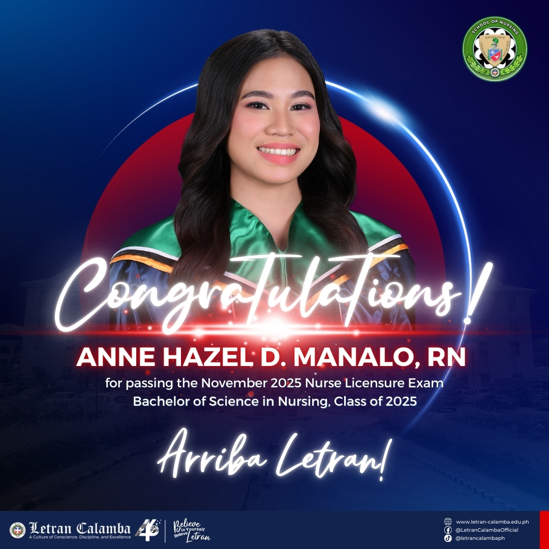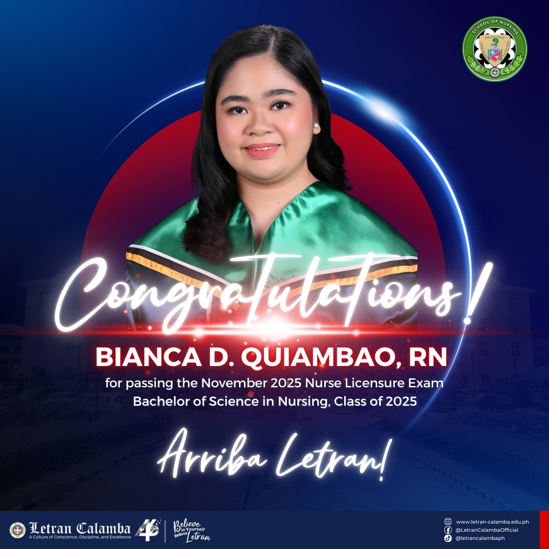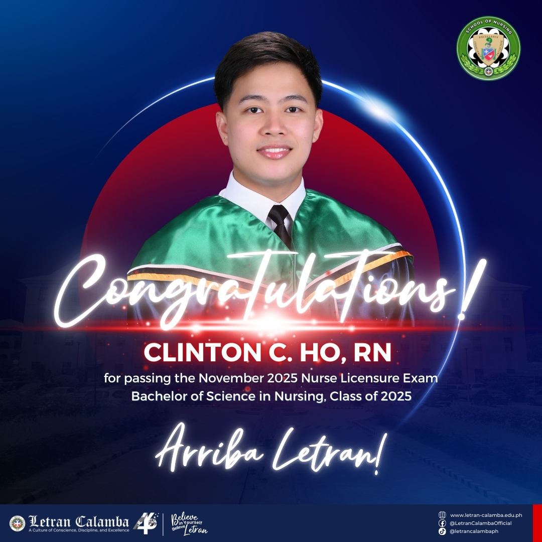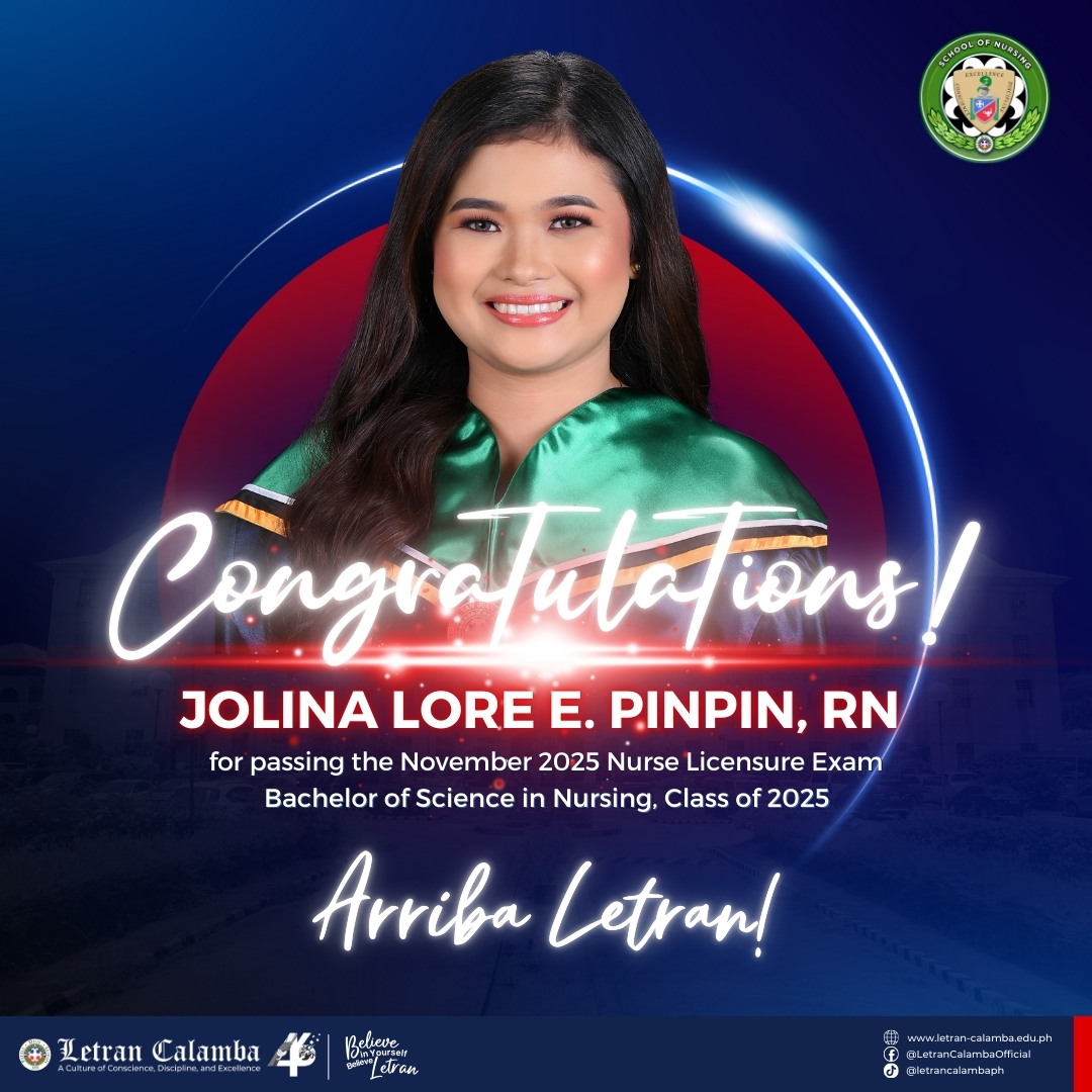 Colegio de San Juan de Letran Calamba is proud to announce a 100% passing rate in the November 2025 Nursing Licensure Examination.