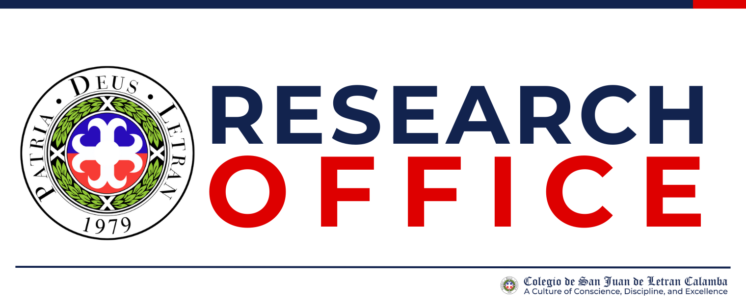 We, the Research Department, a research arm of Colegio de San Juan de Letran Calamba, consecrated to the search for truth and committed to the total human development, strive to nurture the research capability and competence of the members of the Letran community and conduct researches fostering a research environment that is grounded on Filipino culture permeated by Dominican values and responsive to the growing needs of the institution and the society.
