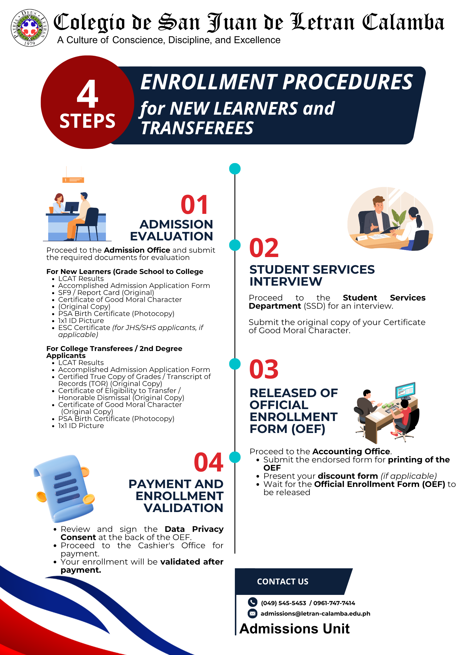 A: The LCAT (Letran Calamba Admissions Test) is the mandatory entrance examination for all new students and transferees seeking admission to Colegio de San Juan de Letran Calamba, from Kindergarten to College.