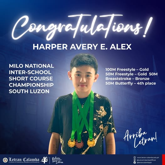 Letran Calamba Congratulates Harper Avery E. Alex on Strong Showing at MILO South Luzon Meet