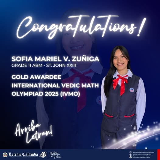 Sofia Mariel V. Zuรฑiga Brings Home Gold from International Vedic Mathematics Olympiad