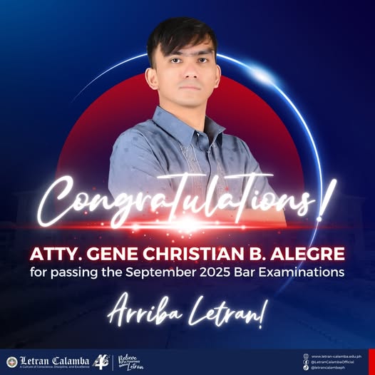 Letran Calamba Celebrates 2025 Bar Exam Passer Atty. Gene Christian Alegre