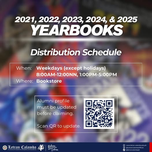 Starting December 15, 2025, 2021-2025 YEARBOOKS will be released at the BOOKSTORE.