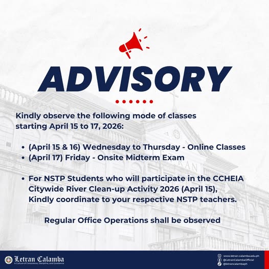 Please be advised of the following mode of classes and office operations this April 15-17, 2026.