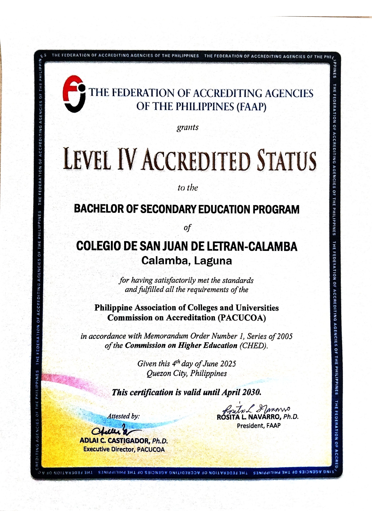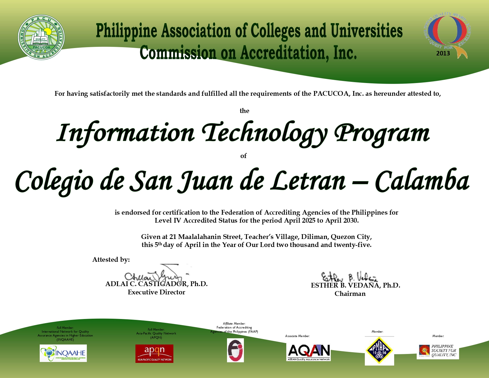 FAAP & PACUCOA LEVEL IV ACCRE BSIT APRIL 2025-APRIL 2030