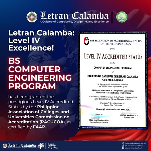 Letran Calambaโs BS Computer Engineering Program Achieves Level IV Accreditation