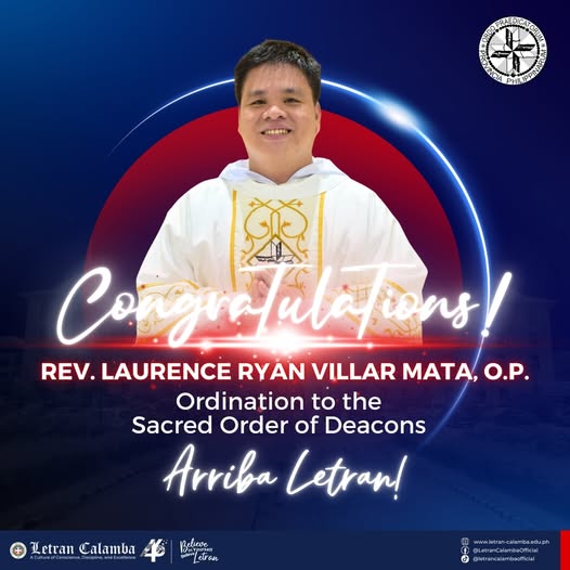 Congratulations to Rev. Laurence Ryan Villar Mata, O.P.! ๐