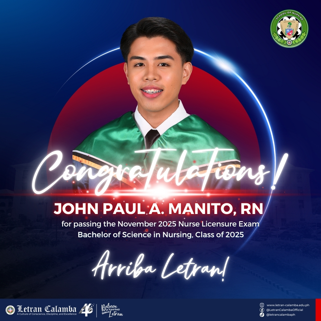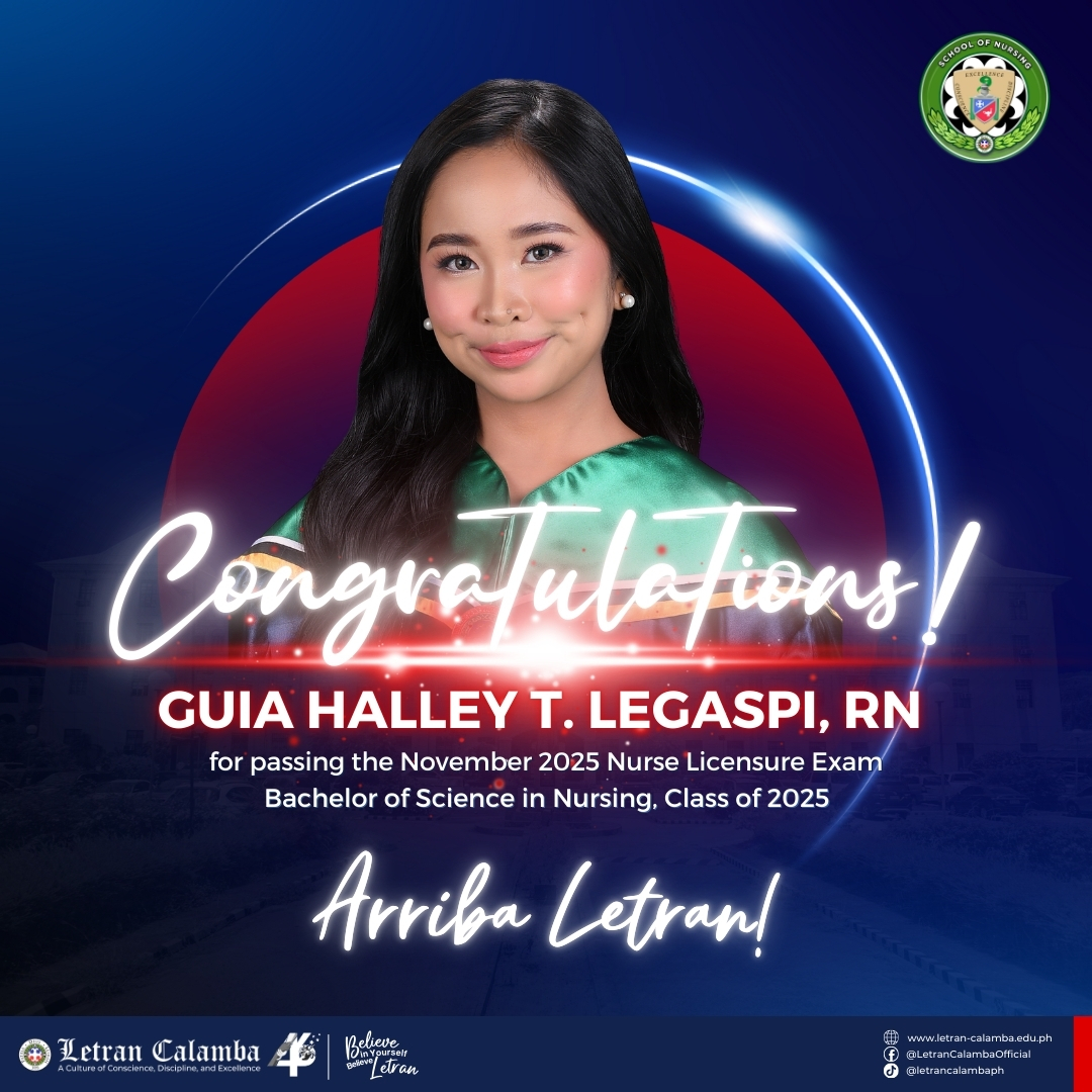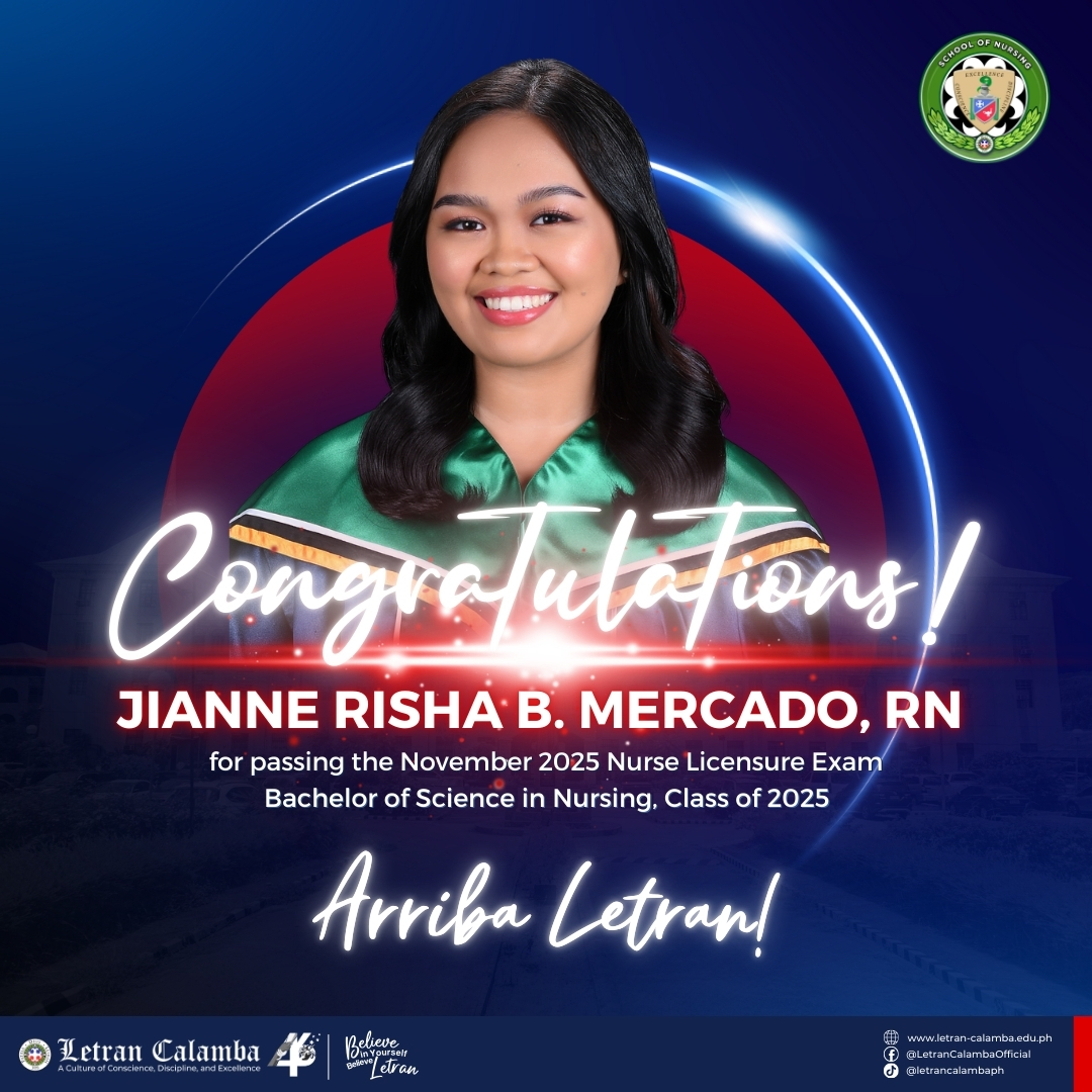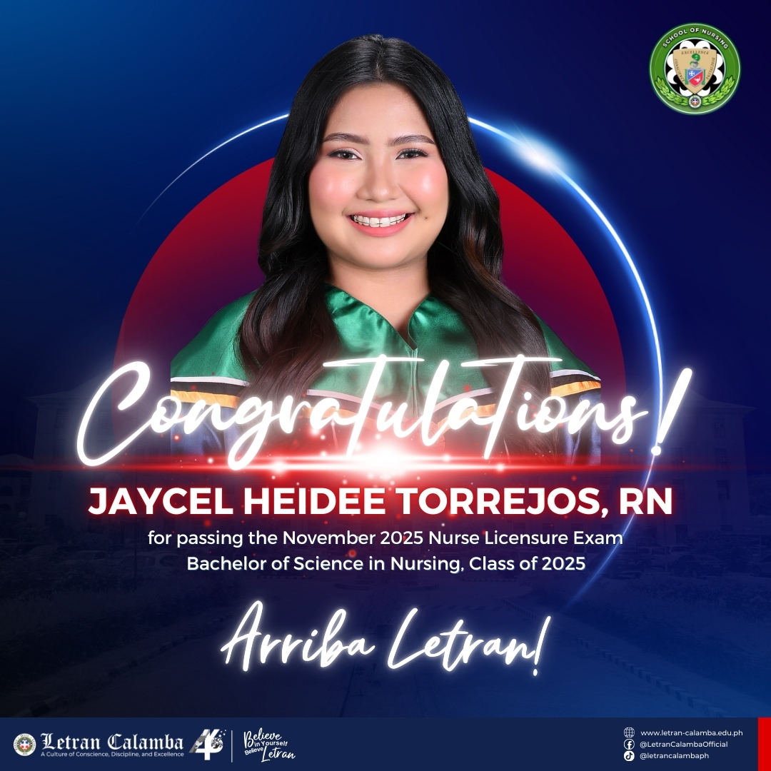 Colegio de San Juan de Letran Calamba is proud to announce a 100% passing rate in the November 2025 Nursing Licensure Examination.