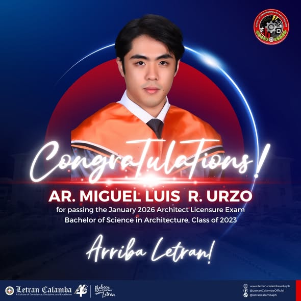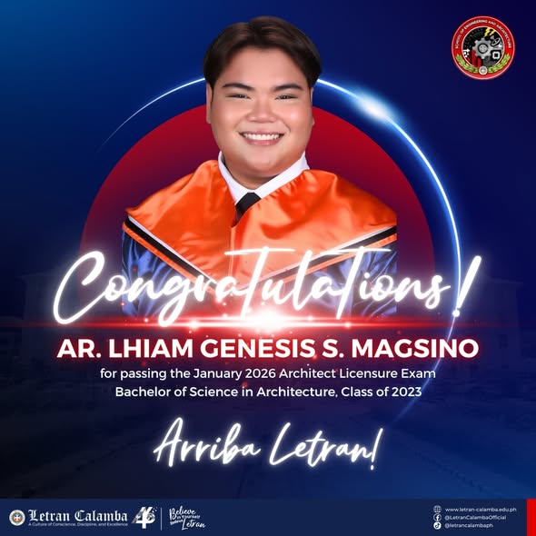 The blueprints of hard work, long nights, and unwavering dedication have finally come to life! Letran Calamba proudly celebrates our successful examinees in the January 2026 Architect Licensure Examination.