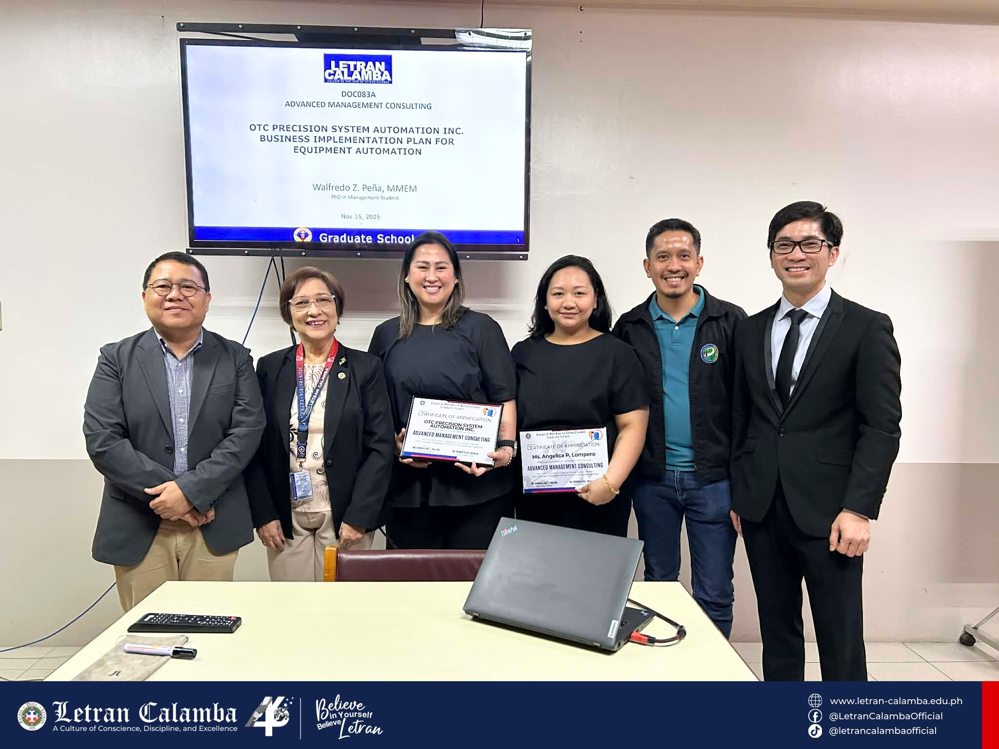 ๐๐ฆ & ๐๐๐๐ฎ๐ฃ๐ฆ ๐๐บ๐ฏ๐ฎ๐ฟ๐ธ๐ฒ๐ฑ ๐ผ๐ป ๐ฎ ๐ฆ๐ฒ๐ฟ๐ถ๐ฒ๐ ๐ผ๐ณ ๐๐ฐ๐๐ถ๐๐ถ๐๐ถ๐ฒ๐ ๐๐ฟ๐ผ๐บ ๐ฅ๐ฒ๐๐ฒ๐ฎ๐ฟ๐ฐ๐ต ๐ฃ๐ฟ๐ฒ๐๐ฒ๐ป๐๐ฎ๐๐ถ๐ผ๐ป๐ ๐๐ผ ๐๐ผ๐บ๐บ๐๐ป๐ถ๐๐ ๐ฆ๐ฒ๐ฟ๐๐ถ๐ฐ๐ฒ Lately, Letran Calamba’s GS & CLLaPS embarked on a series of activities that proved its mettle both in research and community service. Four students presented their proposed company interventions via Management Consulting (MC) on Nov. 15, 2025. In MC, graduate students immerse themselves in a chosen organization where they observe workplace realities and learn the ropes of organizational operations—that meaningfully ends with them (the students) crafting and proposing related interventions the company may consider to adopt. Graduate students who recently completed their theses and dissertations presented publicly their research works via the series of Research Colloquia (RC) that took place on Nov. 21 and 22, 2025. RC are meant to publicize or publicly present research results of our GS students—as the greatest homage we can do to research is to bring it back home where it truly matters: down to our people. Lastly, GS & CLLaPS, through its CSR class and in close coordination with CESD, visited Bgy. Maunong in Calamba City to train women on meat processing on Dec. 6, 2025. Maunong is Letran Calamba’s partner community. In this CSR activity, graduate students reached out to community mothers in an attempt to teach them how to start meat processing as an eventual business. A class project, these students proved that learning—and its applications—happens more beyond the walls and corners of their classroom.