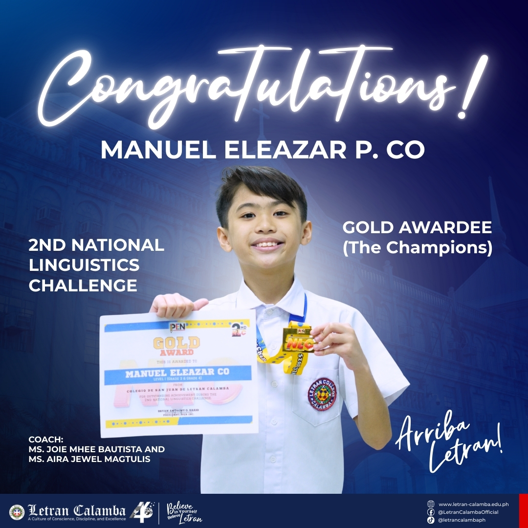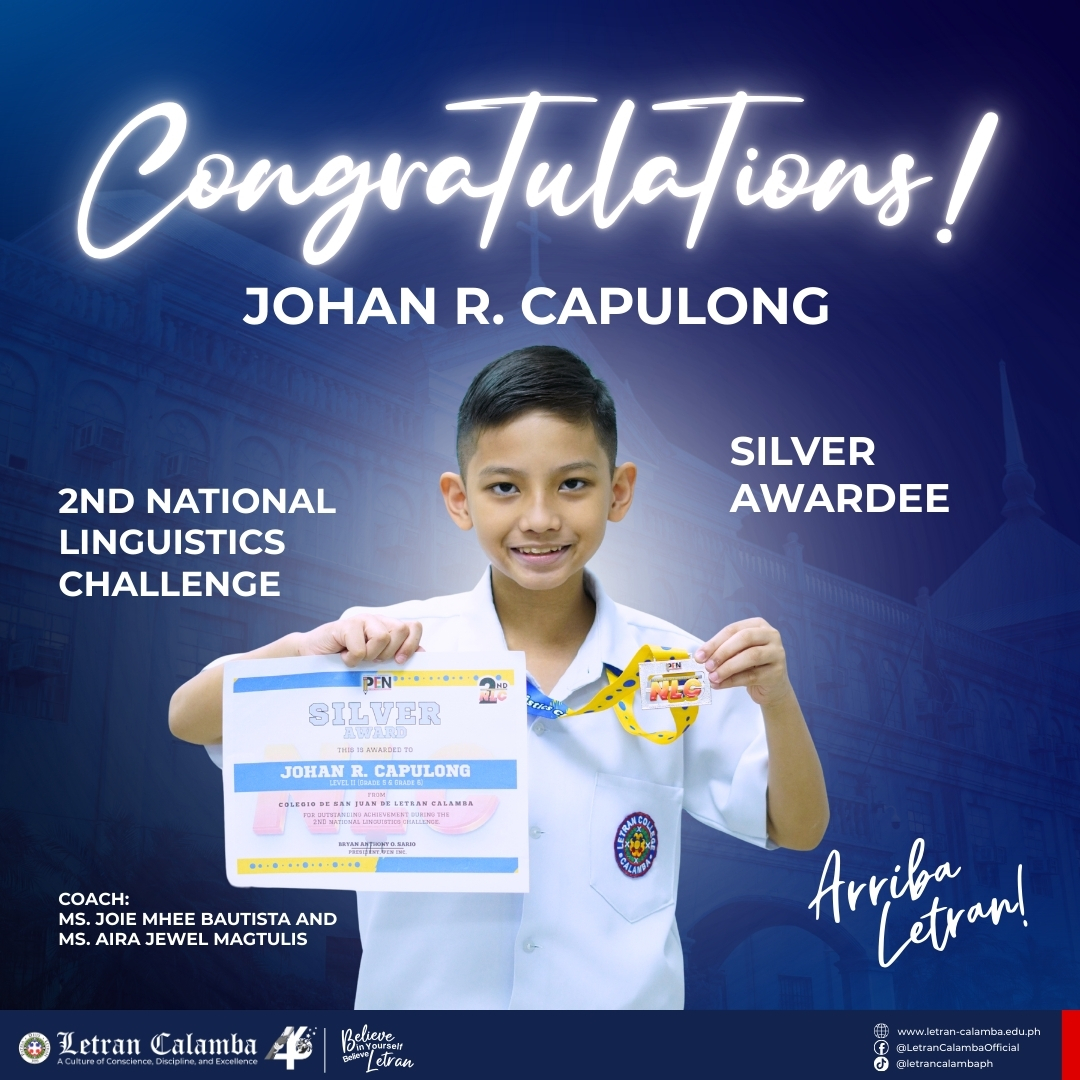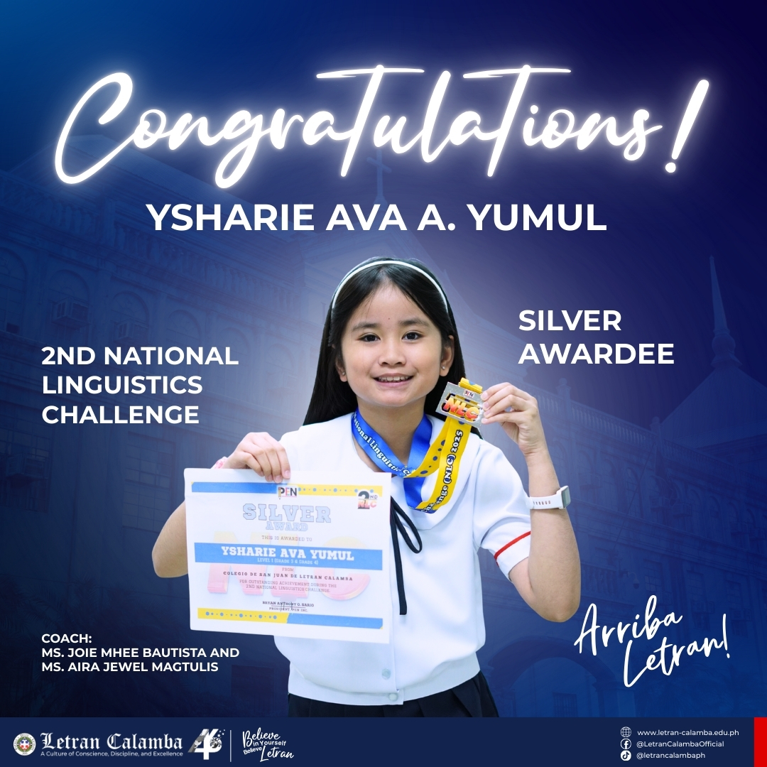 Colegio de San Juan de Letran Calamba proudly celebrates the exceptional achievements of our Basic Education Grade School learners in the 2nd National Linguistics Challenge held on November 16, 2025.
