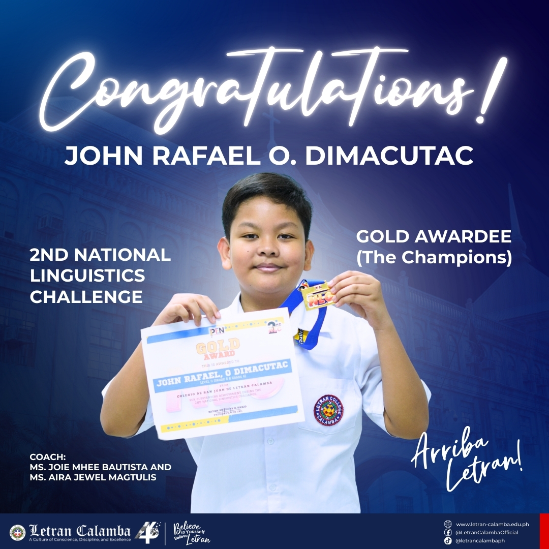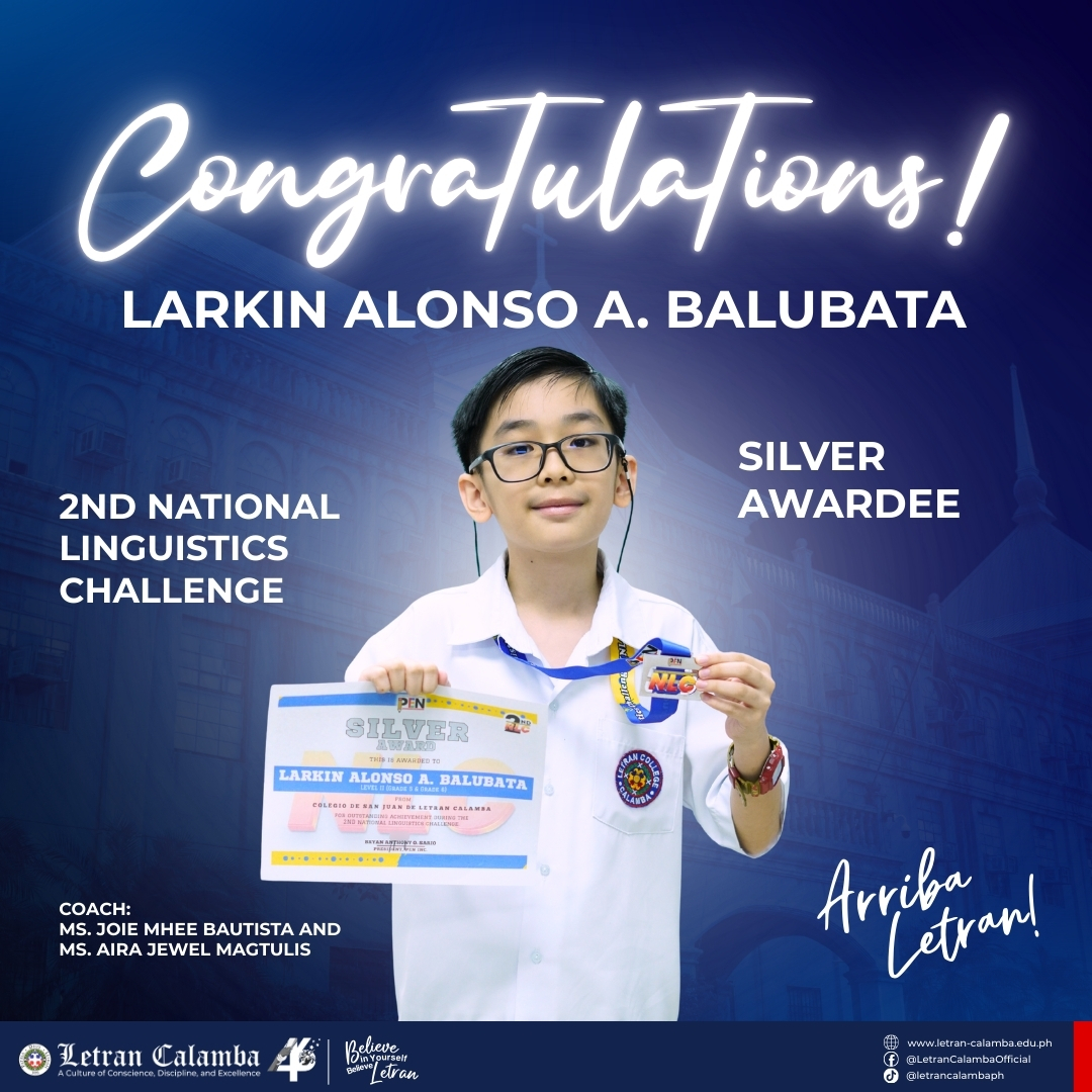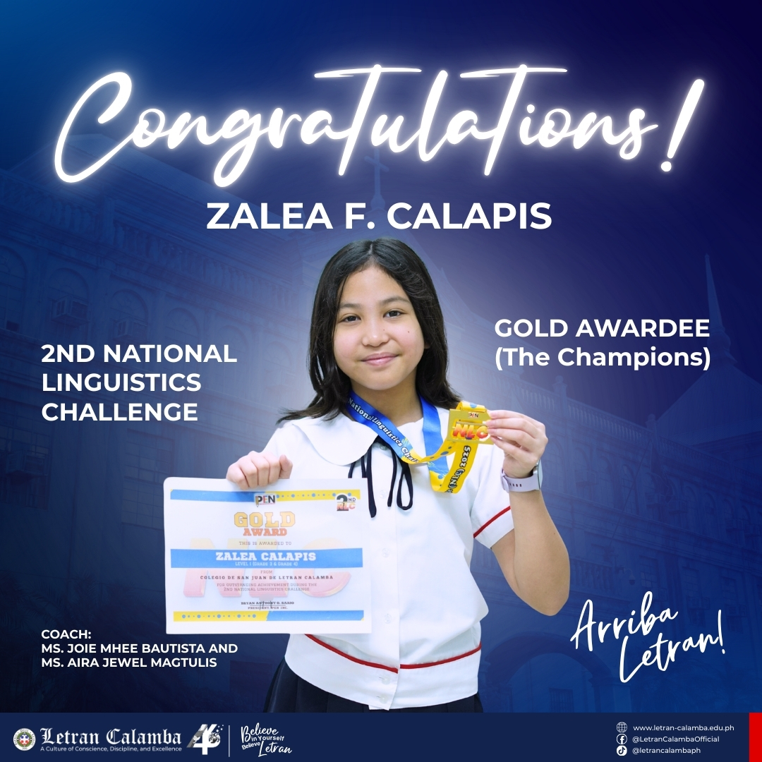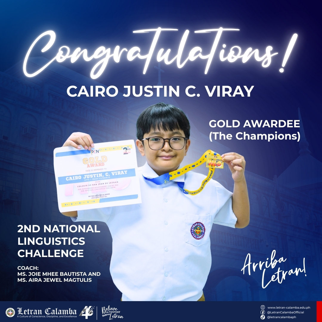 Colegio de San Juan de Letran Calamba proudly celebrates the exceptional achievements of our Basic Education Grade School learners in the 2nd National Linguistics Challenge held on November 16, 2025.