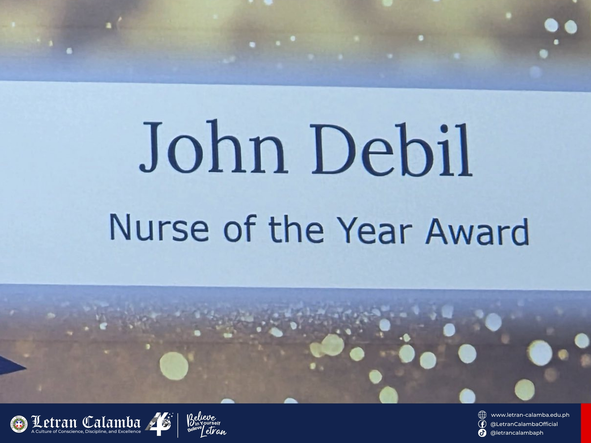 John Ryan, your dedication to the nursing profession and your commitment to excellence embody the true heart of a Letranite. You have not only brought honor to your alma mater but have also showcased the world-class caliber of Filipino nurses on the global stage.